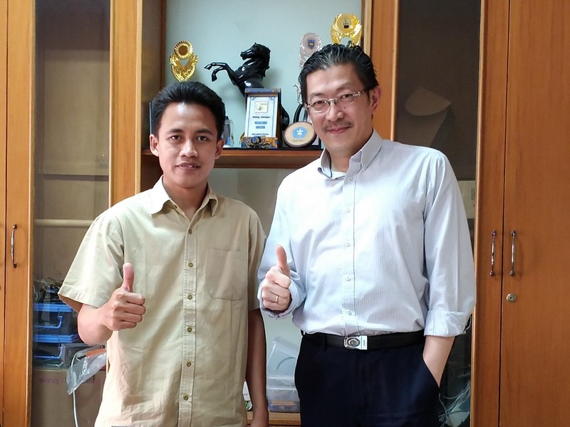 Bersama salah satu peserta kloter pertapaan Pemrograman Mikrokontroler STM32 dan Aplikasi CAN – Controller Area Network, 23 – 25 Juli 2018, Dr (cand) Ery Muthoriq, S.T., M.T., yang saat ini tengah menyelesaikan program Doktoral Teknik Mesin di Institut Teknologi Bandung.