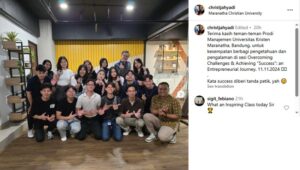 Hari Senin, 11.11.2024, bertempat di ruang Coworking Space DSU GWM, Universitas Kristen Maranatha, Bandung, berkesempatan berbagi pengetahuan dan pengalaman, sekaligus membekali mahasiswa/i Prodi Manajemen, Fakultas Bisnis. Pertemuan yang dimulai pk 09.30, ternyata baru selesai pk 11.00, dari rencana semula hanya 60 menit. Kiranya, apa yang disampaikan dapat menjadi inspirasi bagi teman-teman mahasiswa/i yang akan segera …