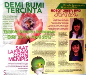 Michelle Emmanuella Tjahyadi (16 tahun) dan Jocelyn Olivia Tjahyadi (14 tahun), dengan Robot Green Bird yang mereka kembangkan sejak tahun 2011 di Padepokan Robot NEXT SYSTEM Bandung. Walaupun baru pada tahapan prototype, namun pengembangan yang terus dilakukan, perlahan namun pasti, Green Bird semakin lengkap dan cerdas. Tabloid Wanita Indonesia edisi Hari Kartini.