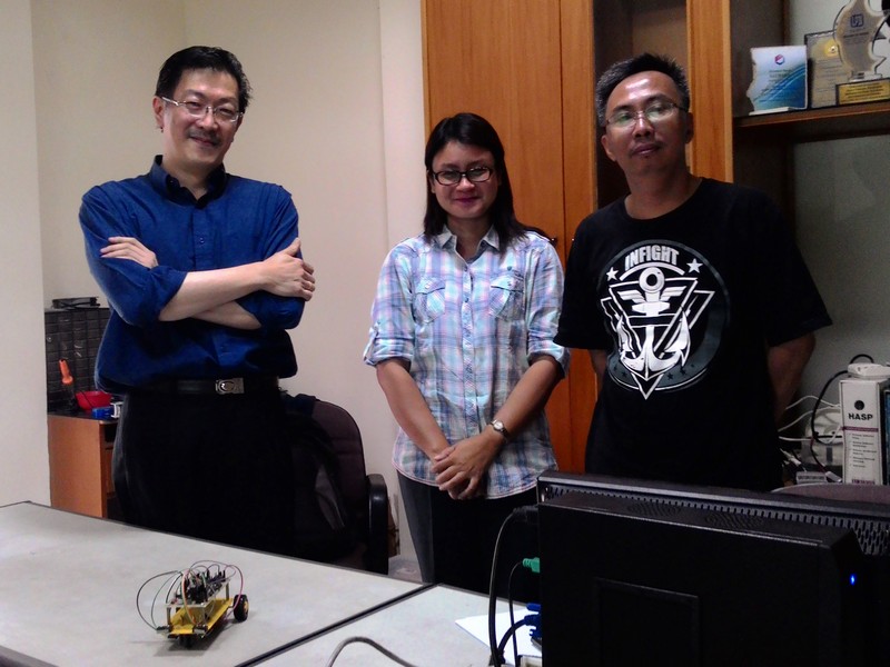 Bersama dengan dua peserta dari Pulau Sumatera, usai kelas pelatihan Pemrograman Mikrokontroler AVR dan Aplikasi Robotik, 14-15 Maret 2016, di Padepokan NEXT SYSTEM Bandung. Terima kasih kepada Ibu Novita, M.Pd (Cand) – SMAN 2 Bandar, Simalungun dan Bapak Sopim Sopian, M.T. dari Politeknik Negeri Sriwijaya, Palembang.